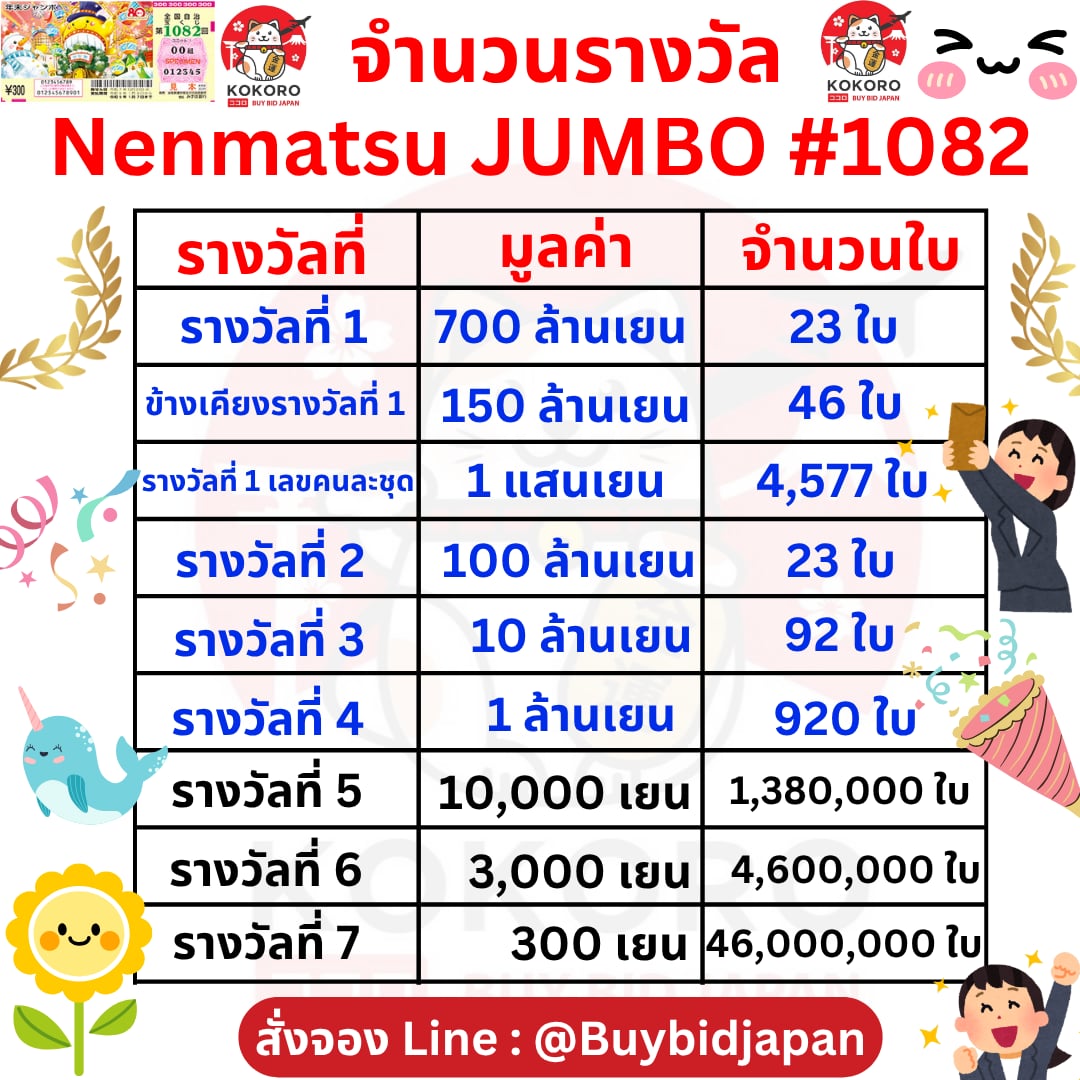 Nenmatsu Jumbo Lotto 2025ลอตเตอรี่ญี่ปุ่น เน็นมัตสึ จัมโบ้ งวดที่ 1082